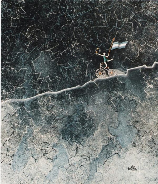 Y pienso en las olvidadas escuelitas de frontera del norte argentino. Allí también flamea la bandera argentina, algo descolorida, muy alejada de los festejos porteños, pero es la misma, la que lleva los colores del cielo: la Celeste y Blanca.