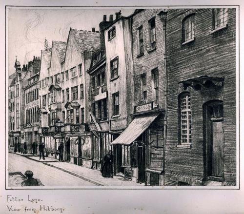 Fetter lane, view from Holborn. http://www.arthurlloyd.co.uk/DisappearingLondon/FetterLaneHolborn.jpg