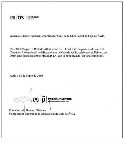 Este tramo triste de la historia no debe empañar la loable acción de los organizadores del certamen, a los que a través de la presente nota aprovecho para saludar a la Obra Social de Caja de Ávila con mi mayor cordialidad y respeto.