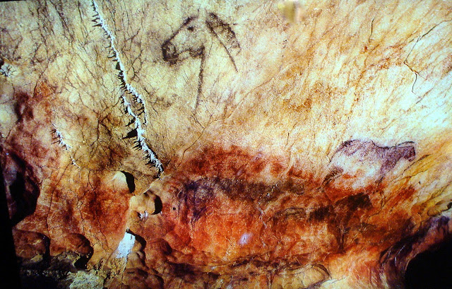 En esta ocasión de un nuevo viaje al Principado he tenido especial cuidado de cumplir los requisitos, necesarios por otra parte para preservar el tesoro que esta tierra esconde en el Macizo de Ardines y a la hora asignada, con la pertinente ropa de abrigo y el calzado apropiado, estaba en la edificio de recepción y entrada a las cuevas. Las entradas a Tito Bustillo y la Cuevona tienen accesos distintos. En grupo de 15 personas y acompañados por un guía especialista hemos cruzado el umbral bajo la cornisa pétrea que lo mimetiza. Esta entrada recorre un túnel artificial excavado para facilitar el acceso de los visitantes, tiene unos 50 metros y es el extremo opuesto a la entrada original que como consecuencia de un derrumbe está cegada. A través de la débil iluminación, que en opinión del guía es incluso excesiva, penetramos en un mundo en la que oscuridad esta cuajada de sorpresas. Es tanta la penumbra que los ojos sólo atienden a los propios pasos. El suelo mojado y resbaladizo, con incierto perfil, no permite un tropezón o un descuido. La duración de la visita obliga a una cierta prisa pero quien puede dejar libre a su imaginación es capaz de resolverlo. Las sorpresas van apareciendo a la luz de la linterna de Miguel, el guía; primero el Entronque con un bien visible caballo violeta, luego el nítido sonido del agua que discurre bajo el suelo y que es la corriente del río San Miguel. Al final, el Panel Principal, una de las cumbres del Rupestre. Este conjunto presenta pinturas superpuestas sobre otras más antiguas. Hablamos de un periodo que va desde el Gravetense al Magdaleniense, entre 30.000 y 10.000 años A.C. y el cromatismo cambiante en función de los periodos confiere a este conjunto de casi un centenar de figuras la excelencia por su espectacularidad entre el resto de yacimientos de la Cornisa Cantábrica.