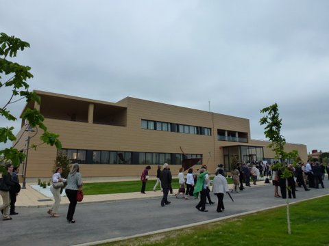 El 19 de Mayo se iniciaban las obras de la Residencia de Ocio y Tiempo Libre de ASPANOA en Almudevar (Huesca). Dos años después asistimos a su inauguración un 18 de mayo del 2012 en el que sólo el clima no quiso sumarse al acontecimiento, mostrando su cara mas fea y desapacible pero que no deslució en absoluto al programa previsto. A la hora convenida nos congregamos todos los invitados para presenciar la inauguración oficial por parte de la Presidenta de Aragón, Dª Luisa Fernanda Rudi, que descubrió el monumento conmemorativo en compañía de D.Miguel Casaus, Presidente de Aspanoa (Asociación de Padres de Niños Oncológicos de Aragón) En el salón social de la residencia tuvo lugar el acto institucional con diversos discursos de las autoridades, entre las que se encontraba el Justicia de Aragón. Como maestro de ceremonias actuó el infatigable Gerente de Aspanoa, D. Antonio Rodés. El Sr. Casaus cerró el acto agradeciendo a instituciones, artistas, deportistas, entidades y donantes particulares la inestimable ayuda que han prestado a esta causa de solidaridad que persigue ofrecer un oasis o refugio a padres y niños asociados que les permita ausentarse de la dura realidad que los acecha.