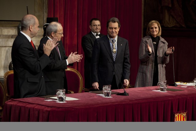 Mas ha asegurado sentirse un privilegiado por haber hecho realidad un sueño. Ha aludido a los dos hechos más importantes de su vida: conocer hace 30 años a su mujer, Helena Rakosnik -presente en el acto- y convertirse hoy en presidente de Cataluña. Dice sentirse en deuda “con mi país” por haberle designado presidente. Por ello, “tengo más deberes que cumplir que derechos, tengo más ganas de servir al pueblo de Cataluña que no de ser servido”.