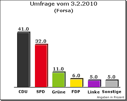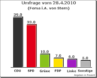 En las elecciones regionales de este domingo en el estado federado alemán de Renania del Norte Westfalia los cristianodemócratas de la CDU han sufrido una debacle electoral bastante sonada y que estaba cantada en los últimos días debido al discurso en zigzag de la canciller federal Ángela Merkel en la cuestión de la inminente bancarrota de la república de Grecia y la lucha por la estabilidad del Euro. Foto: RÁ¼ttgers (CDU)