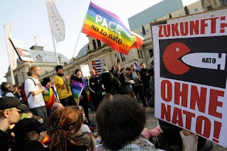 Otro aspecto interesante: La cumbre de la OTAN se celebró lejos, muy lejos del pueblo. Para empezar, la policía francesa impidió a los habitantes de Estrasburgo que salieran a la calle libremente, y los que se acercaron a la zona del evento eran sólo estos caóticos antisistema, con banderas comunistas y pacifistas, en un número bastante reducido, para levantar barricadas, incendiar un hotel y una caseta de aduanas y levantar mucho humo.