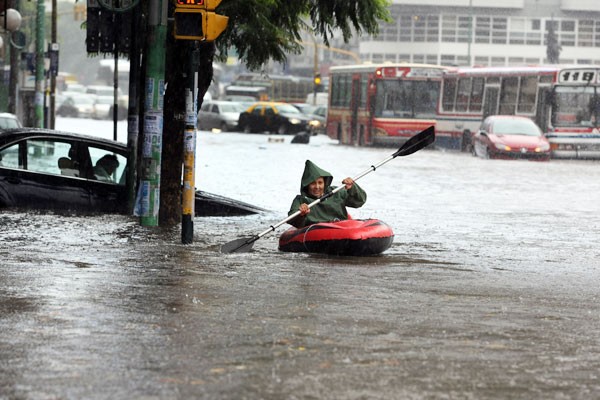 En Buenos Aires estamos en pleno verano. Enero ha pasado con un clima espectacular, casi todos los días a pleno sol. Febrero suele sorprender con lluvias tan intensas como inesperadas. Esta semana la ciudad ha colapsado por las lluvias intermitentes: por momentos se suspenden los subterráneos, hay cortes de luz en algunos barrios, en los más perjudicados, el agua llegó al metro de altura, inundando comercios, viviendas y autos, que flotan como anfibios en las calles porteñas. El pronóstico afirma que el caos continuará por algunos días más…y la ciudad presenta imágenes tan inusuales, que me lleva a compartirlas desde aquí. La gente las envía a los diarios online, como corresponsales improvisados, tentados de capturar estos momentos en sus instantáneas. Aquí van algunas vistas de mi Buenos Aires querido, pasado por agua.