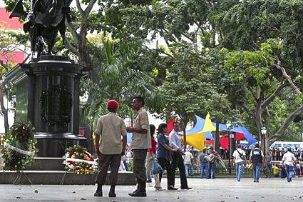 En este ir y venir de cosas, dictámenes y circunstancias, me topé con varios discursos elaborados contra la Plaza Bolívar de Caracas, quizás porque representa un espacio emblemático de la acción ciudadana pro-revolución (como la Plaza Francia, ubicada en la urbanización clase media-alta de Altamira, en el sureste, es ícono del movimiento opositor) y decidí pasearme algunos días por allá para constatar.