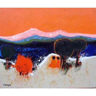 Con tonos vibrantes y cálidos, Frédéric MENGUY nos invita a seguirlo en la búsqueda de un mundo lejos de nuestra vida cotidiana, en el que habitan belleza y poesía.