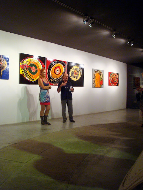 Pareciera como si los elementos se hubiesen puesto de acuerdo para sabotear la inauguración de la exposición*Activity* de la pintora zaragozana Sonia Abraín pero ni el calor, ni la lluvia, ni siquiera el fútbol evitaron que la asistencia fuera más que generosa. La sala se llenó porque el cartel era sugerente. Por un lado la exhuberante propuesta de Sonia, que presenta obras de su actual etapa creativa en la que experimenta con lo matérico para descubrirnos efectos imprevistos aunque provocados. Mezcla acrílicos con esmaltes que se precipitan en unas gamas cromáticas de fuerte impacto. En sus espirales nos invita a descubrir todos los mundos que le preocupan.