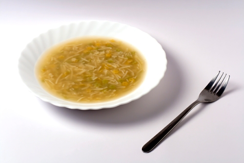 La imagen inicial que el artista tenía pensada para esta exposición era la de una gran rueda de camión pinchada. Sin embargo, una semana antes del evento una idea cruzó su mente y realizó una sesión para finalmente colgar las tres imágenes que adornan este artículo. La inutilidad de los cubiertos viene dada no por los objetos en sí mismos, perfectamente válidos para millones de occidentales, sino por su relación con la comida con la que se los ha reunido en la fotografía. Y ahí es donde radica la gran diferencia. Si bien una rueda pinchada puede ser producto de la casualidad, una inutilidad provocada por una caja de clavos que un transportista anterior dejó caer sin percatarse, el autor ha relacionado, intencionadamente, los cubiertos con comidas para las que resultan poco idóneos. Ha sido la voluntad del hombre la que ha vuelto inútiles las herramientas perfectamente válidas, y por lo tanto contiene una crítica social y política al uso que hacemos de lo que nos rodea e incluso de la propia vida. ¿Cuántas veces nos empeñamos en emplear lo menos adecuado, lo más incómodo, lo menos aconsejable o incluso lo contraproducente para llevar a cabo nuestra tarea? A veces por desconocimiento de otros medios, a veces por obcecación, a veces por pereza. Pero la inutilidad radica en nosotros, y no en la cosa en sí.