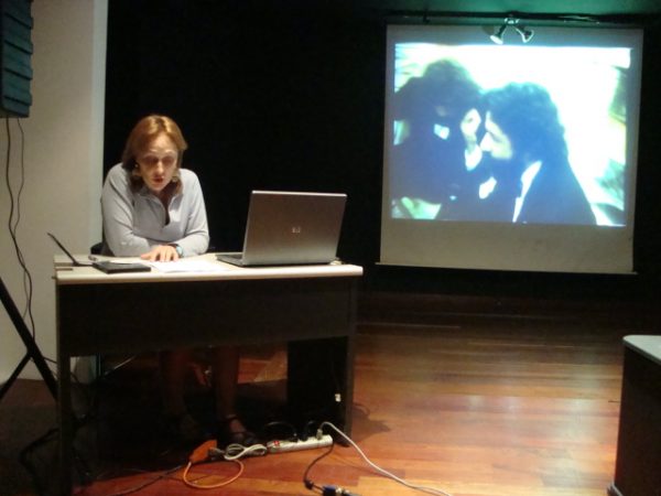 He elegido un poco lo más significativo en relación al tema que estoy presentando esta tarde: Venezuela y Super Ocho. Esta película que vamos a ver de Ricardo Jabardo y de John Moore ganó en el Festival de 1977 , fue el segundo festival. Fue a Irán, es decir causó una sensación en Irán, a todos los iraníes les gustó muchísimo, la aplaudieron y ganó muchísimos premios, entonces creo que es representativa en la manera en que el Súper 8 hizo vibrar. El Súper 8 venezolano hizo vibrar al mundo. La segunda selección de esta tarde, estoy muy emocionada, es una película que no he visto todavía. Es la primera vez que la veo, es la Cotorra 2 de Rolando Peña y Rolando ha tomado la iniciativa y ha hecho un transfer de Súper 8 a DVD que hace posible que esta noche podamos disfrutar de su película. Yo tengo muchas ganas de verla. Y luego, después de mi charla, él nos va a hablar un poco de su película, ya que está aquí y nos puede hablar de eso. Y la tercera selección la voy a poner mientras estoy dando la charla, se trata de Bolívar Sinfonía Tropikal. Claro, esta película es muy importante, según mi teoría es la película que realmente abre el festival de Cannes al Súper 8, o sea, que nosotros comenzamos a pensar… fue un venezolano el que hizo que Cannes dijera: -bueno, nos estamos perdiendo muchísimo. Vamos a integrar este gran arte a la cinematografía mundial, o sea, que si uno empieza a pensar el efecto del Súper 8 en el mundo es realmente impresionante. Entonces, he hecho esas tres selecciones. La película dura mucho más pero vamos a ver nada más que diez minutos, mientras yo estoy hablando… para que no se haga la charla más larga… De acuerdo, bueno.
