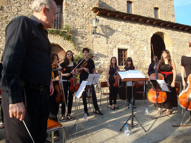 El pasado sábado, 23 de Junio, la música clásica tomó sin resistencia este pintoresco lugar al que llaman Santa María de la Peña Los nuevos ocupantes venían armados de instrumentos musicales por lo que esta pacífica invasión sólo pretendía traer la paz de la melodía a sus habitantes En las horas previas a la Noche de San Juan, la tarde estaba iluminada por el paseo solar mas largo. La calma se asomaba desde las aguas del embalse. Solamente los vencejos añadían sus gorgojeos a la escena, a la puerta del tesoro románico de su iglesia y la casa parroquial. La Orquesta de Cámara de Huesca estaba dispuesta para ofrecer un concierto dividido en dos partes; la primera con obras de Vivaldí y su música barroca y la segunda mas contemporánea y ecléctica con obras de Bernstein, Nino Rota, Gershwin o los arreglos de Teds Ricketts para temas de Abba, así como obras de Mikus o Tchaikovsky.