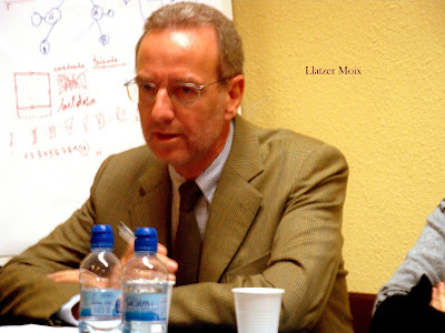 Llatzer Moix ironizó con la excelentes relaciones entre los arquitectos estrella y los jefes de gobierno autonómicos, alcaldes,etc. Asistimos a la realización de macro edificios sobre los que se carecen de previsiones para su mantenimiento y viabilidad, pero prevalece el rédito político en el momento oportuno. Con un estilo ameno y directo, el periodista catalán nos contó detalles sobre las aventuras museísticas de las ciudades españolas a partir de la irrupción del Guggenheim de Bilbao en el panorama urbano nacional. Sus conocimientos sobre la arquitectura dieron como resultado unas reflexiones jugosas y llenas de contenido.