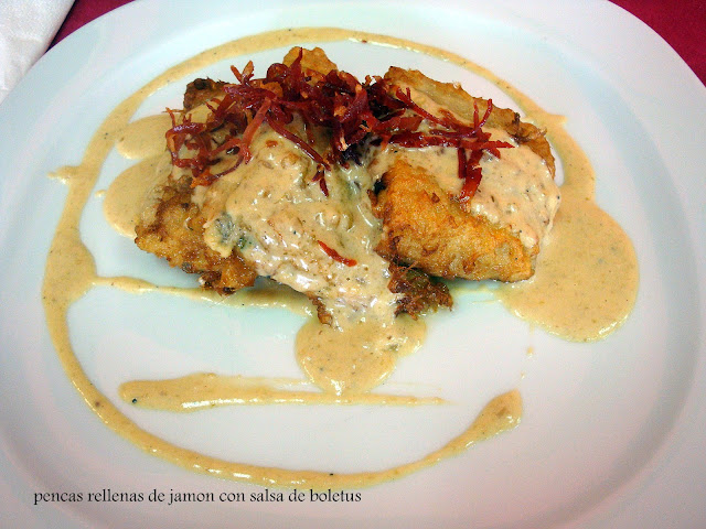 Pencas rellenas de jamon y salsa de Boletus Edulis.