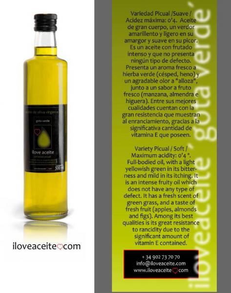 iloveaceite.com es un proyecto empresarial del que es fácil enamorarse. Apuesta, sin duda, por su pasión por el aceite de oliva virgen extra, consolida el conocimiento de la identidad mediterránea mediante acciones continuas de puesta en valor de la cultura común del olivo, dinamiza e incentiva el desarrollo local, y refuerza los vínculos económicos, sociales y culturales de nuestra zona de producción. iloveaceite.com es, además, una gestora online y offline para la comercialización e internacionalización (exportación) de aceite de oliva virgen extra, que ofrece productos de altísima calidad -directamente desde los productores- respaldada por una dilatada y solvente experiencia empresarial.