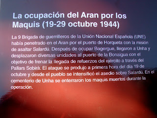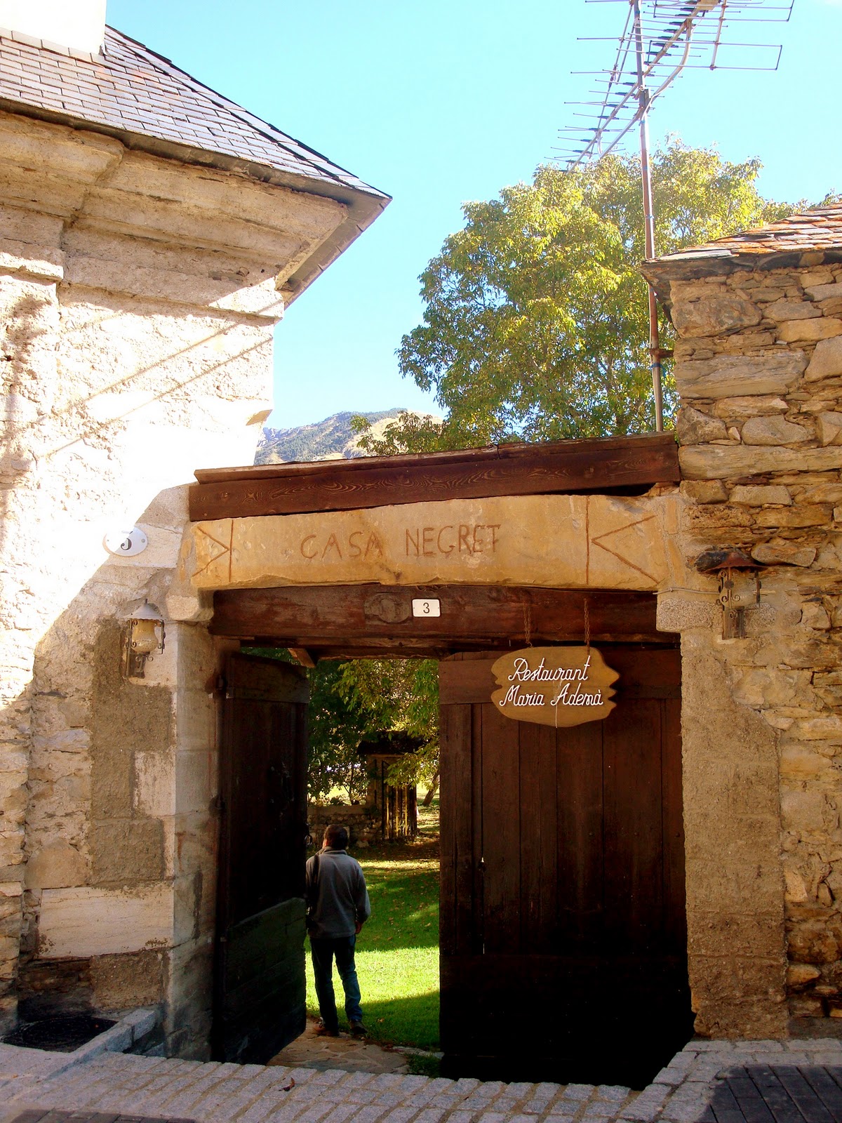 La olla aranesa es el plato típico del Valle D’ARAN que se puede degustar en todos los restaurantes de aquel rincón pineránico pero sin embargo, aunque cada cocinera o cocinero tiene su secreto, hay lugares que desde tiempo se han especializado en esta deliciosa receta, especial para aguantar el invierno o simplemente para darse un gusto inolvidable. Lugares como el pueblecito del Naut Arán, UNHA, han consolidado una fama en sus restaurantes que guardan el método más tradicional de cocinar la Olla. En mi primera visita al Valle, hace tiempo, recuerdo que acudí a uno que me recomendaron algunos naturales de la zona- María Ademá– y salí de aquella casona antigua y montañesa con el regusto maravilloso de la olla desparramado por mis papilas. Hoy, Unha ha crecido, cambiado un poco su aspecto por las nuevas construcciones, que guardan no obstante el estilo tradicional de las casas aranesas. El mismo María Ademá ha ampliado sus instalaciones y junto con Casa Carmela Casa Pérez conforman una oferta que atrae a los visitantes hacia este rincón, plagado de sorpresas como de edificios singulares tales como El Casal de Branset, palacio del siglo XVI  de bella y robusta planta. La sorpresa se aparece en forma de memoria histórica en la iglesia románica con el pequeño cementerio a sus puertas. Allí reposan combatientes por una utopía que les concedió la dignidad inmortal. Los maquislucharon en estas montañas difíciles de domar. Forma parte de nuestra historia. El paseo por sus calles en esta espléndida mañana de noviembre invita a recordarla.